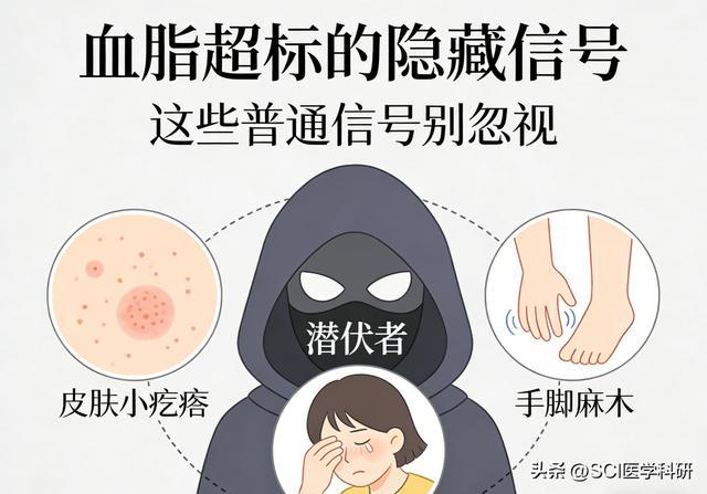 血脂超标不像崴脚那样疼得跳脚,也不像发烧那样烫得明显。它更像一个藏在暗处的“潜伏者”,用皮肤上的小疙瘩、晨起的小迷糊、手脚的小麻木,一遍遍发出信号。